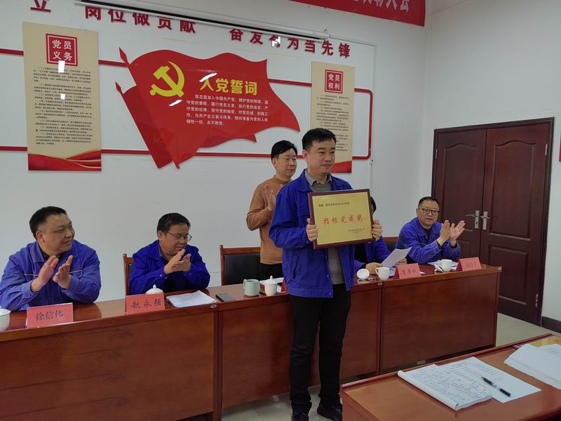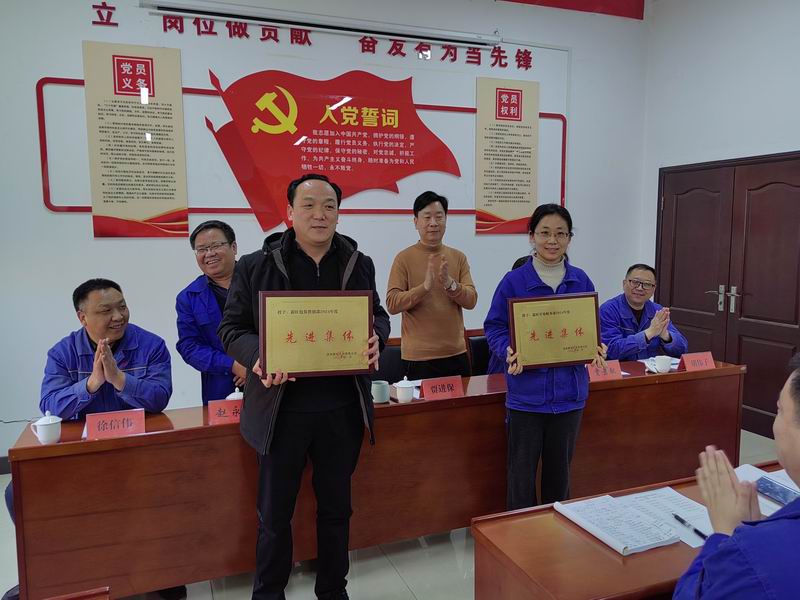 公司副總經理趙永強宣讀了《關于兌現(xiàn)2024年度安全承包獎的決定》、《關于表彰2024年度先進班組和先進個人的決定》,對2024年年度工作中作出突出貢獻的炭材運行三班先進班組、柴彬等8名先進個人予以表彰,并頒發(fā)了先進集體獎等四項集體獎牌以示鼓勵。